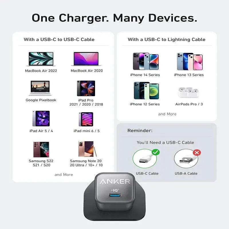 - Nano Now Charges Everything: Upgraded with a 30W output so now you can charge your earbuds, phone, tablet, and even your MacBook Air with a tiny charger.